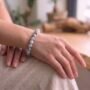 The Moonstone Bracelet embodies the gentle glow of the moon, symbolizing intuition, new beginnings, and divine feminine energy. Known as the “Stone of Inner Growth,” Moonstone helps calm emotional instability, balance hormones, and enhance emotional intelligence. It supports you through life’s cycles, promoting peace, harmony, and self-discovery. Aligned with the Crown and Third Eye Chakras, this crystal enhances intuition and spiritual connection while inviting luck and abundance. Perfect for meditation, emotional healing, or daily wear, the Moonstone Bracelet radiates a soft, nurturing energy that encourages inner strength and emotional clarity.