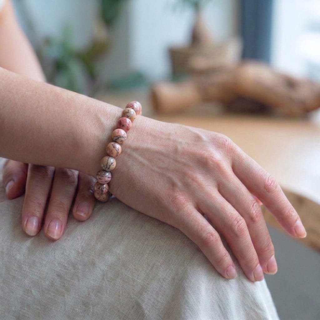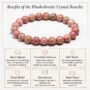 Deep Emotional Healing: Natural Rhodochrosite bracelet helps in identifying and releasing repressed feelings and deep traumas from the past. It encourages a positive attitude and a creative, courageous approach to life’s challenges.