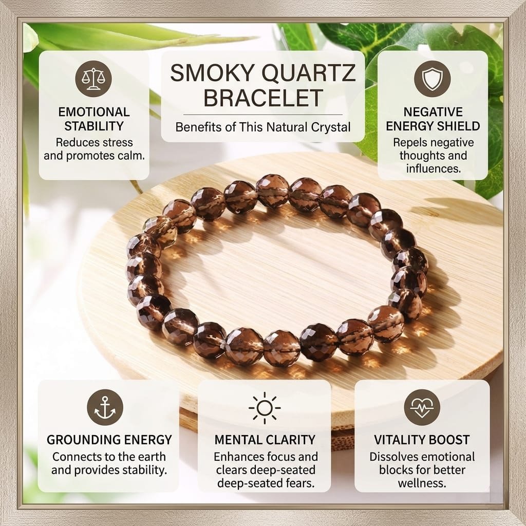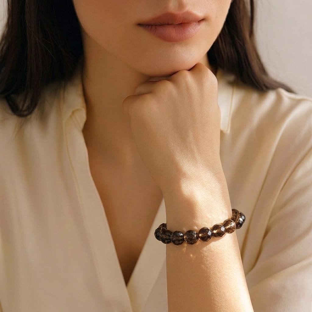 The Smoky Quartz Bracelet is a powerful grounding stone that helps you stay calm, centered, and protected from negativity. Known as the “Stone of Power,” Smoky Quartz absorbs negative energies, detoxifies the mind and body, and transforms them into positive vibrations. It promotes emotional balance, relieves stress, and enhances focus, making it ideal for those seeking stability in challenging times. Connected to the Root Chakra, this bracelet strengthens your connection with the Earth, helping you release fear and anxiety while building resilience and inner strength. Perfect for everyday wear or meditation, the Smoky Quartz Bracelet brings a sense of safety, clarity, and empowerment to your energy field.