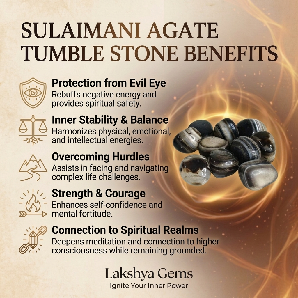 Why Sulaimani Agate Crystal Tumbles is a Vastu & Spiritual Essential At Lakshya Gems, we source high-quality Sulaimani Agate with distinct, natural banding to ensure you receive a stone that carries a high-vibrational protective frequency.